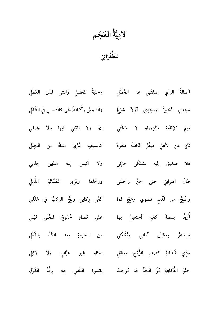 مجدي أخيرا ومجدي أولا ش رع. أصالة الرأي صانتني لامية العجم عدد الأبيات. بها لا ناقتي فيها ولا. أصالة الرأي صانت ن ي عن الخ ط ل وح لية الفضل زانتني لد ى الع ط ل مجدي أخيرا ومجد ي أو لا ش ر ع والشمس رأ د الض ح ى كالشمس في الط ف ل فيم.